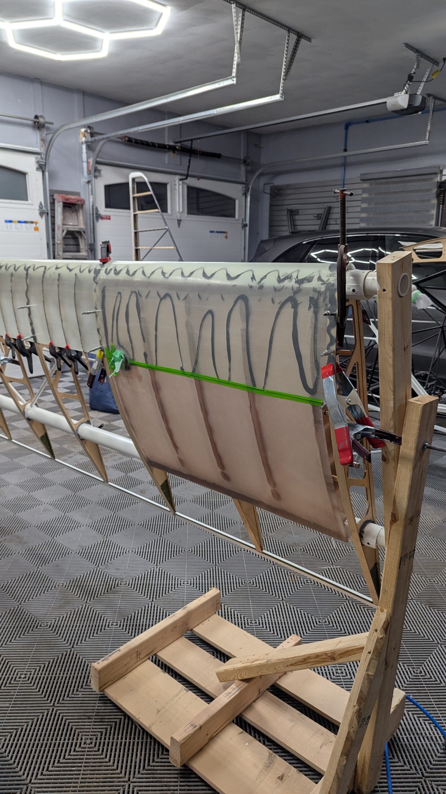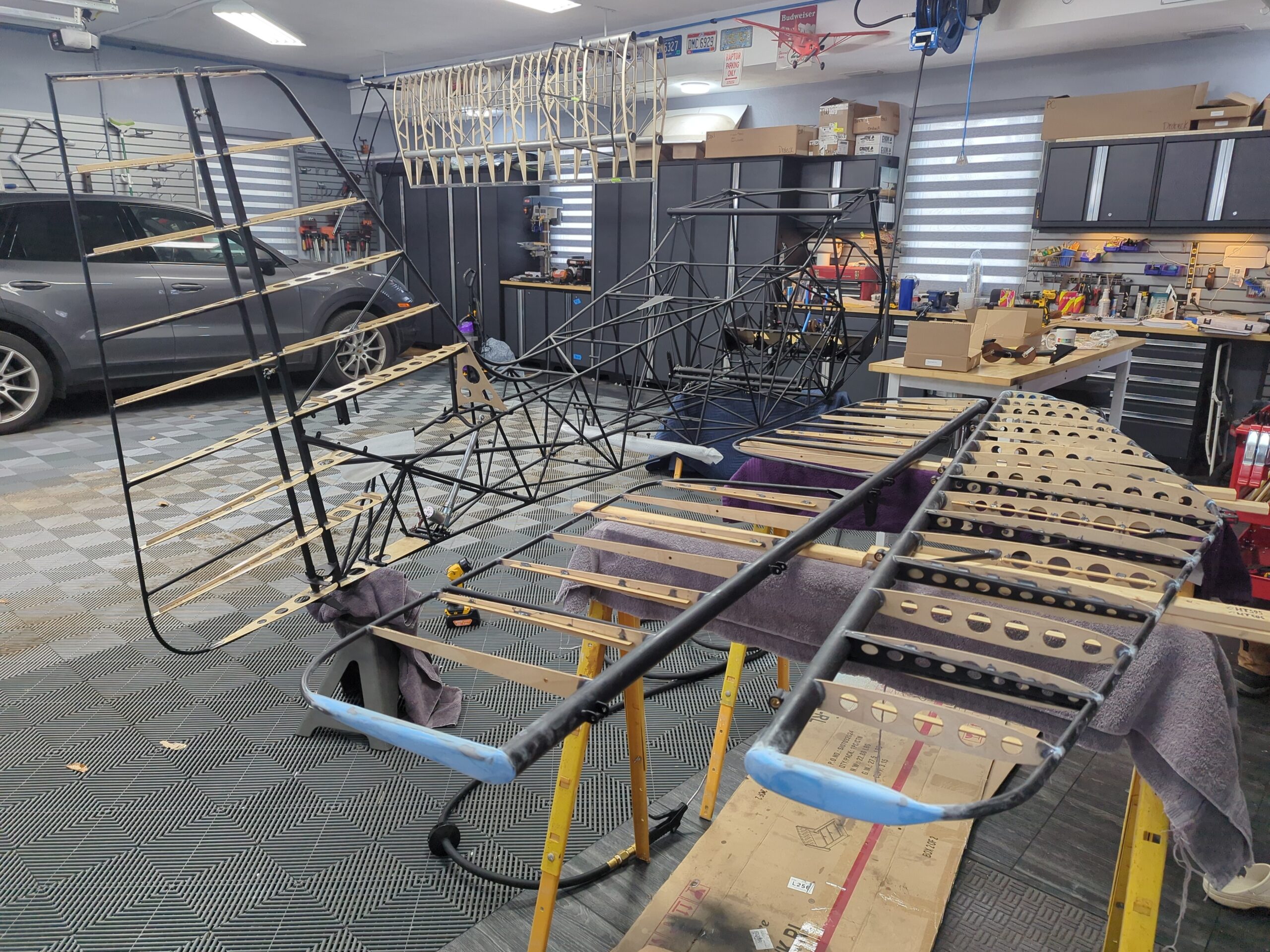 The next major chapter focused on the wings, specifically crafting the internal structure. This was the most meditative, detailed, and frankly messy part of the build. We spent countless hours in the shop working with the wooden ribs, which required absolute precision. It was a repetitive cycle of sanding, shaping, and gluing, followed by the painstaking application of polyurethane to seal and protect every single piece from the elements. This phase—a true test of patience—involved ensuring every rib was perfectly matched and every joint was flawlessly bonded before they could finally be mounted onto the airframe.